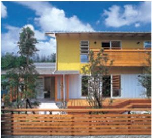 白いサッシとレモン色の外壁で爽やかに演出した事例。明るく優しい色合いは、街並みにも優しい印象をもたらします。周辺が住宅地の場合、このような調和の取れた色選びが好ましいでしょう。