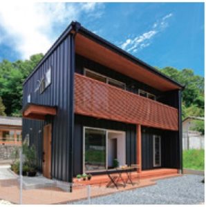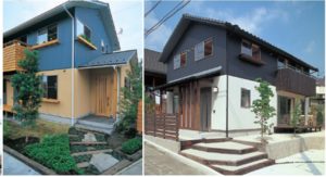 クールでスタイリッシュなイメージに。収縮色のため建物が締まって見えます。全体を黒一色にすると重たい印象になるので、少しトーンを落とすか、他の色とバランスよく組み合わせれば、よりおしゃれにデザイン性を高めることができます。黒いガルバリウムと木部の色が好相性です。