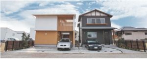 上品な外壁カラーが植栽の自然色と共鳴しあうお洒落な二世帯住宅完成。共用スペースは玄関、リビング、和室。分離スペースはダイニングキッチン、浴室洗面、階段、2階個室。プライバシーも交流もどちらも大切にした家族思いの住まいです。